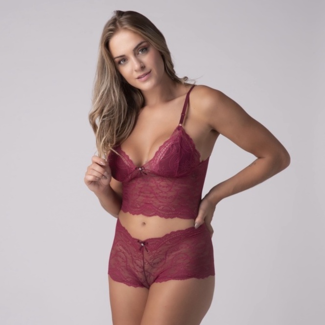 > Baby doll moderno, atrativo e diferenciado que valoriza as curvas do corpo feminino. > Confeccionado em microfibra e com detalhes em renda. > A camiseta possui alça regulável, forro na área do seio e renda na parte do abdômen possuindo uma leve transparência. Não possui bojo. > O short, é curtinho e coladinho, também possuindo uma pequena parte de renda. Possui elástico na cintura, garantindo conforto e boa mobilidade durante a noite. > O estilo da peça é voltado tanto para o conforto quanto para a sensualidade, já que conta com um tecido leve e com partes de renda macia. > Indicado para noites românticas, dia dos namorados, aniversário de casamento, date com o crush, ou também para o dia a dia. > Produzido no vinho, um tom que nunca sai de moda e está ligado à ideia de provocação e de sedução. COMPOSIÇÃO: 82% poliamida / 18% elastano / Forro 100% algodão MEDIDAS: > M - 36/38; > G - 40; > GG - 42. SUGESTÃO: Para comprar corretamente o tamanho, meça uma peça sua que vista bem e compare com a nossa tabela disponibilizada na imagem. Use uma régua ou fita métrica para medir o short e a blusa de uma ponta a outra (fora do corpo). COMO CUIDAR DA PEÇA: Evite lavar na máquina sua lingerie com outras peças pesadas (como jeans e toalhas), não use cloro, não passe ferro e prefira a secagem à sombra para melhor durabilidade. Agradecemos a visita, e aguardamos sua compra. ***** LEIA COM ATENÇÃO! Somos a Renda Íntima Lingerie, loja de fábrica direto da capital da lingerie: Nova Friburgo. Há anos no mercado da moda íntima, somos especialistas em baixo preço e ótima qualidade. Nossa proposta é levar mais estilo e conforto para seu dia a dia e nos momentos mais especiais da sua vida. Compre com a gente e obtenha bastantes benefícios: - Postamos em até 24 horas úteis após a confirmação do pagamento; - Atendimento exclusivo do início ao fim da compra; - Caso a peça não se ajustar bem ao seu corpo, aceitamos devolução; - Qualidade garantida: nossa marca se encontra há anos no mercado com ótimos resultados; - Todos os envios são feitos pela transportadora terceirizada da shopee (Shopee Xpress).