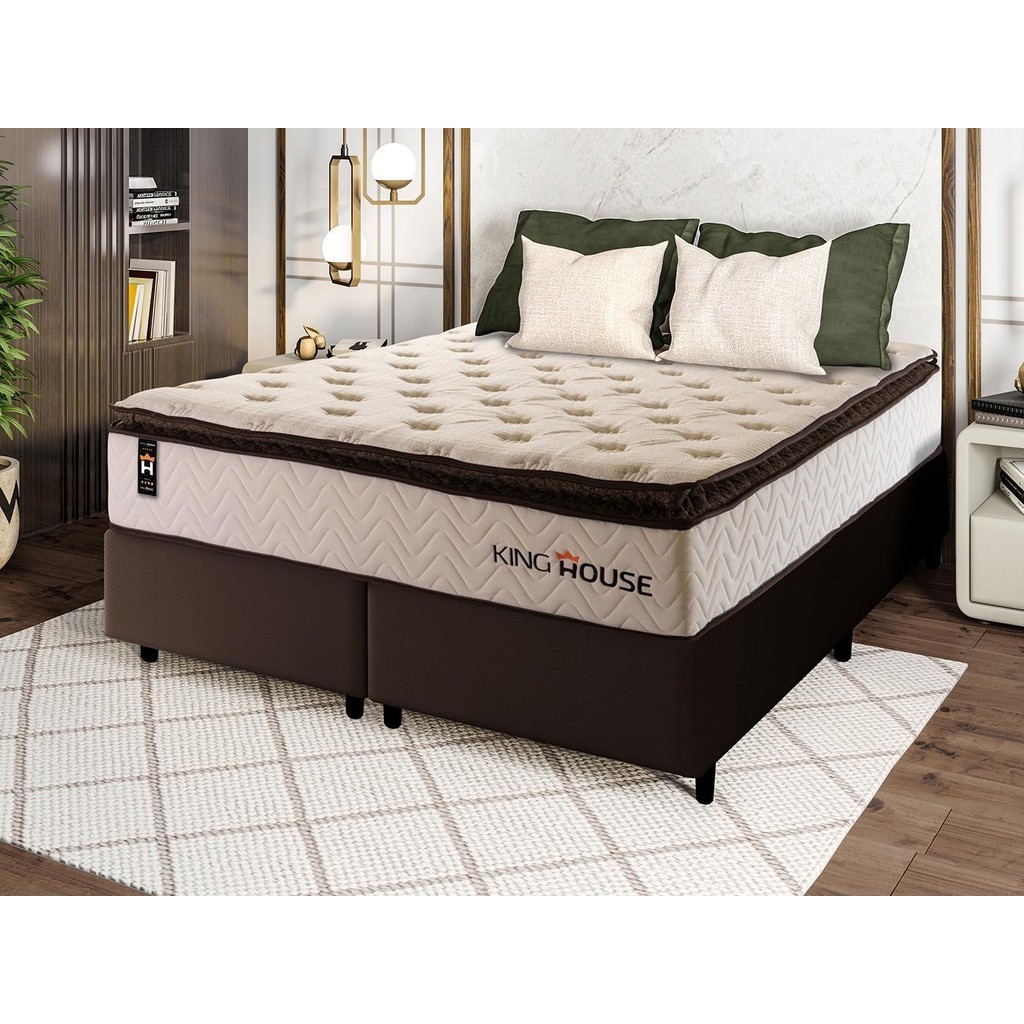 Conjunto Cama Box c/ Molas Ensacadas Quartzo Marrom King 193x203x71