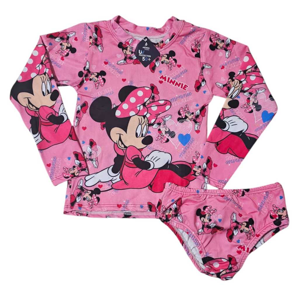conjunto camisa uv50 + calcinha infantil camiseta proteção solar praia personagem minie minnie banho