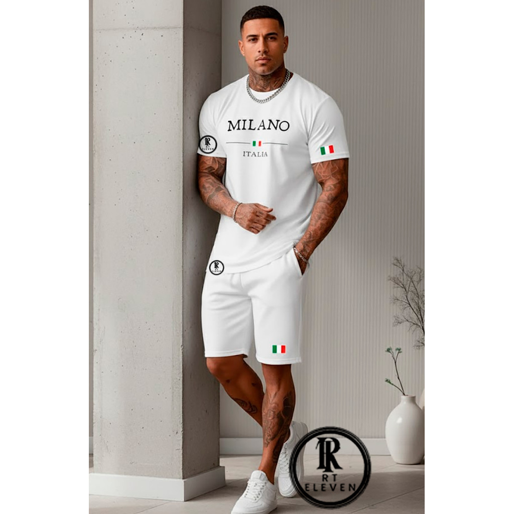 Conjunto Camiseta + Short Moletom Estampado Milano Itália Street Camiseta Malha Linha Premium + Short Mauricinho RT Elev