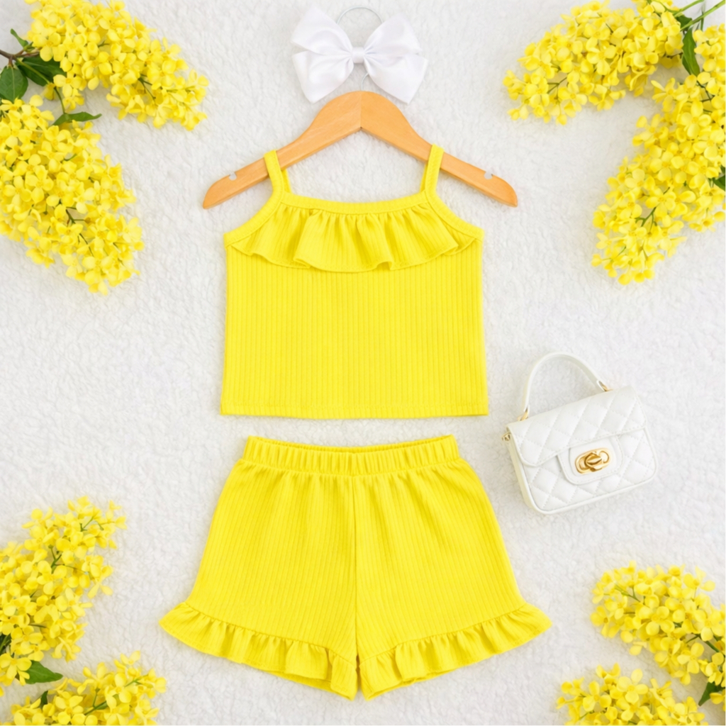 Conjunto Canelado Infantil Babado Menina Lindo e Confortável Tamanhos 2 4 6 8