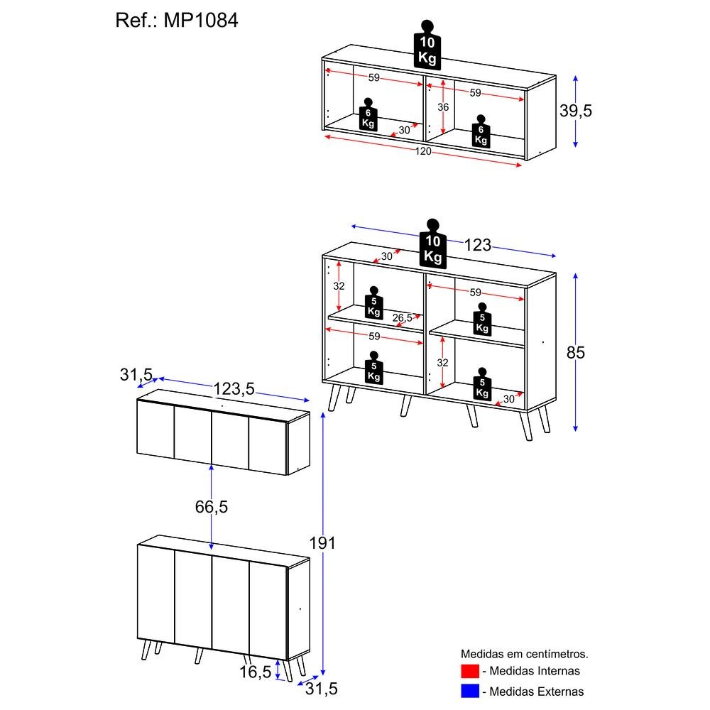 Receba seus convidados com estilo e sofisticação com o Conjunto Cantinho do Café Retrô Armário e Aparador 4 portas Multimóveis MP1084. Fabricado em MDP (15mm) com acabamento acetinado (cerca de 20% de brilho), garante durabilidade e resistência. Composto por um aparador e um armário aéreo com 4 portas e prateleiras, ele proporciona amplo espaço interno para organizar todos os itens necessários para a deliciosa hora do cafezinho. Seu design clean confere um visual moderno, combinando com qualquer tipo de decoração. Além disso, o aparador possui pés retrô em polipropileno que oferecem estabilidade e um charme vintage. Conteúdo da Embalagem: 1 (um) Aparador 1 (um) Armário Aéreo Manual de Montagem Kit Ferragem Dimensões do produto montado: Armário Aéreo - Altura: 39,5cm | Largura: 123,5cm | Profundidade: 31,5cm Aparador - Altura: 85cm | Largura: 123cm | Profundidade: 31,5cm *Você pode consultar as medidas detalhadas na imagem técnica do produto. *Obrigatório fixar o aparador na parede. *As cores do produto podem sofrer variações de tonalidade de acordo com as configurações do seu dispositivo. Imagem meramente ilustrativa. Decoração e eletros não acompanham o produto. O produto será entregue desmontado e não disponibilizamos o serviço de montagem.