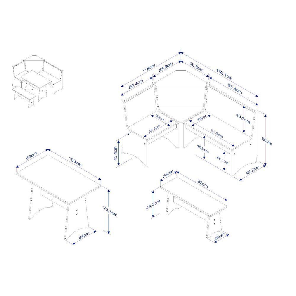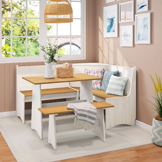 Conjunto Canto Alemão Em Madeira Maciça Branco Natural Marin Brasil
