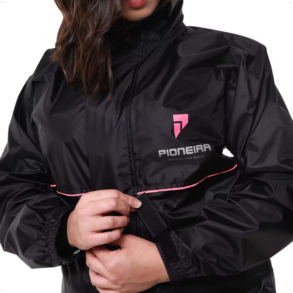 Conjunto Capa de Chuva Feminino Tamanho G Preto Impermeável Motoqueiro Nylon 0,20mm Pioneira - 1101-F-PRE-G