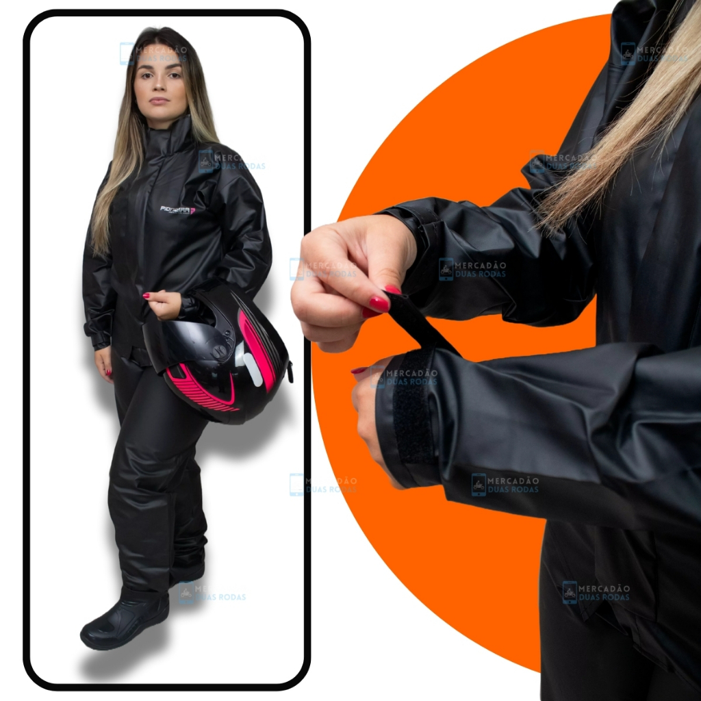 CONJUNTO CAPA DE CHUVA PIONEIRA COMBAT PVC CGOLA FEMININO 100% impermeavel