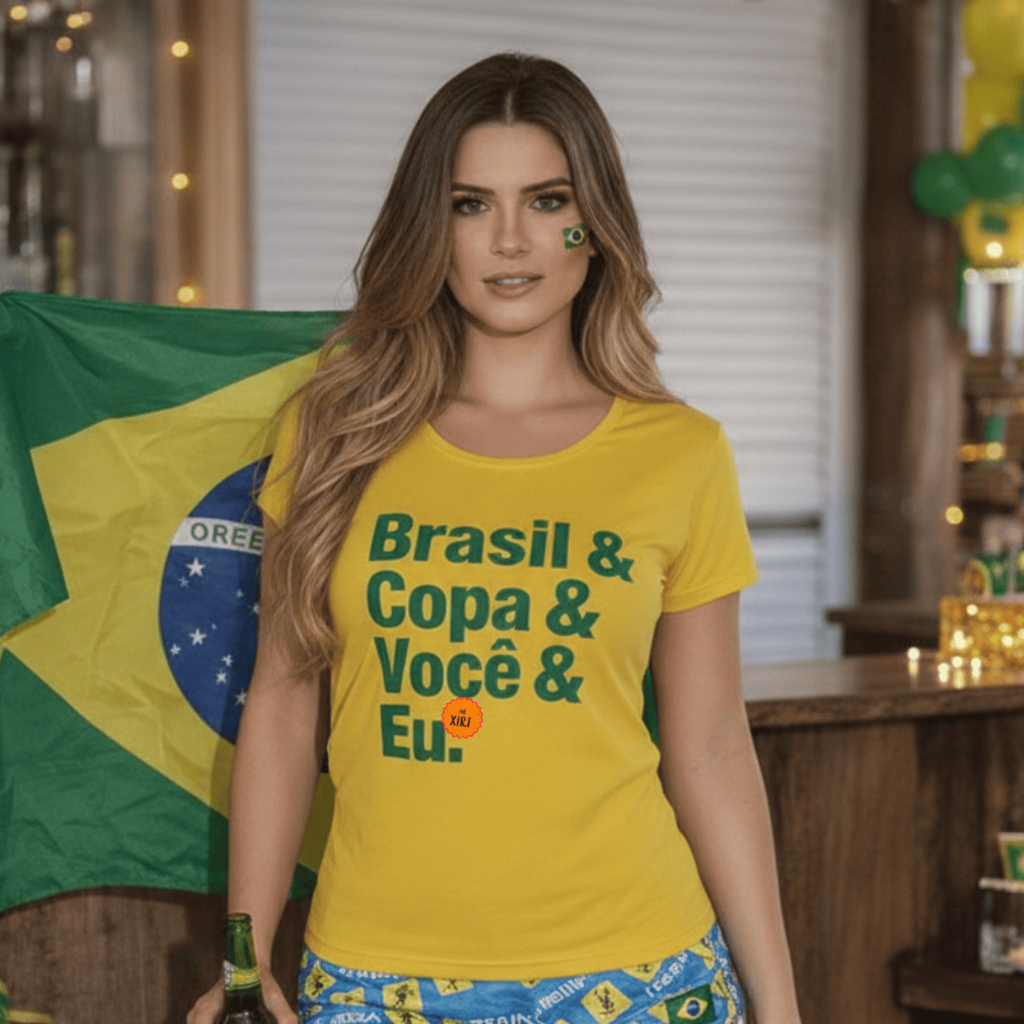 Conjunto Casal namorados Copa Futebol Brasil Seleção Kit 2 Camisetas "Brasil & Copa & Você & Eu"