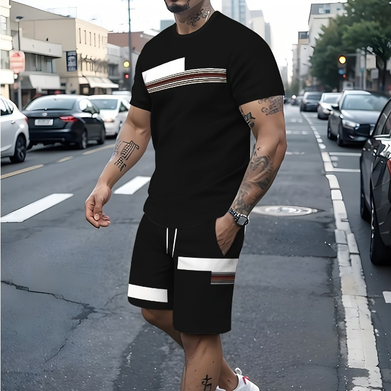 Conjunto Casual Masculino para Exterior 2 Peças Camiseta de Confortável Shorts com Cordão