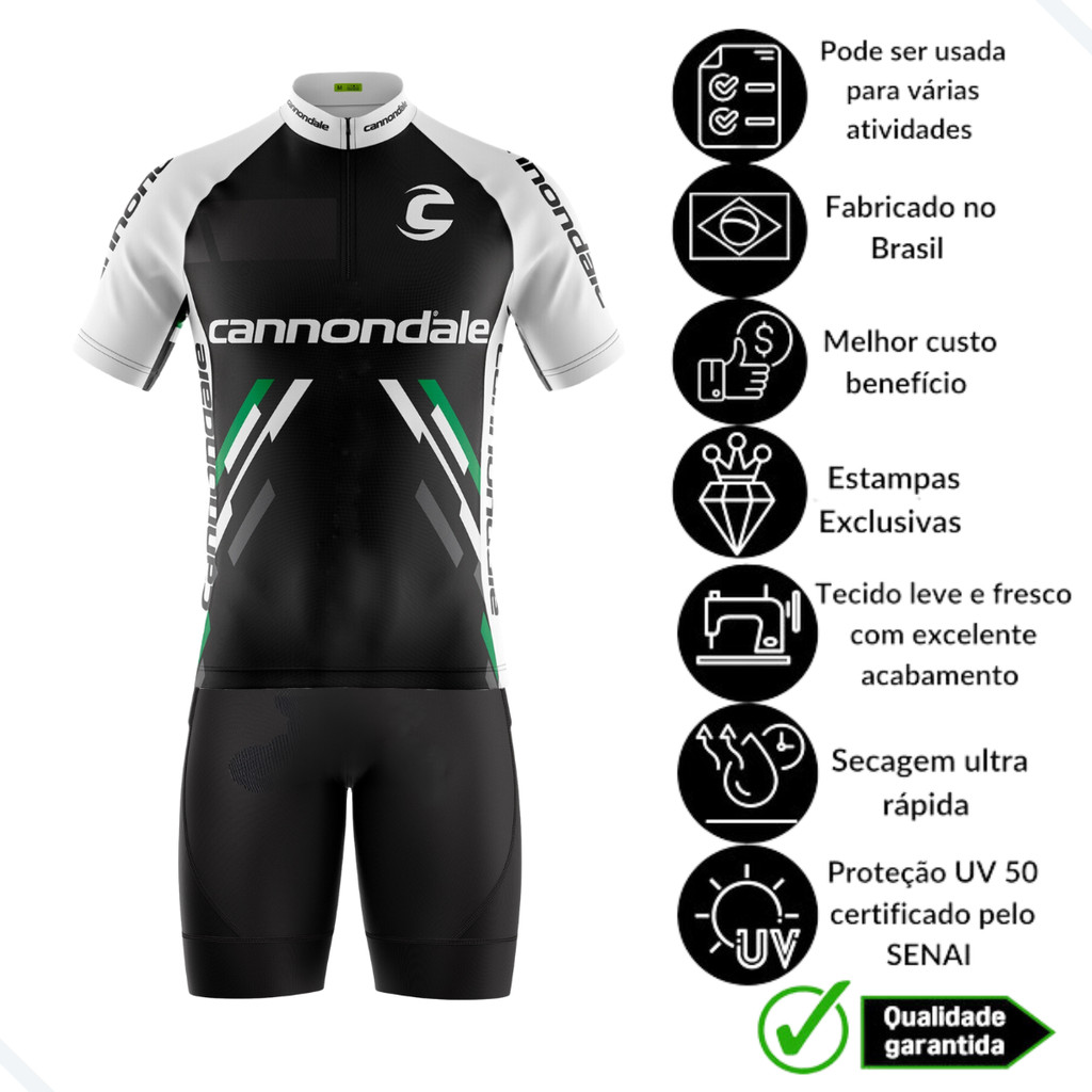 CONJUNTO CICLISMO MASCULINO BERMUDA E CAMISA CANNONDALE COM MANGUITOS UV 50+