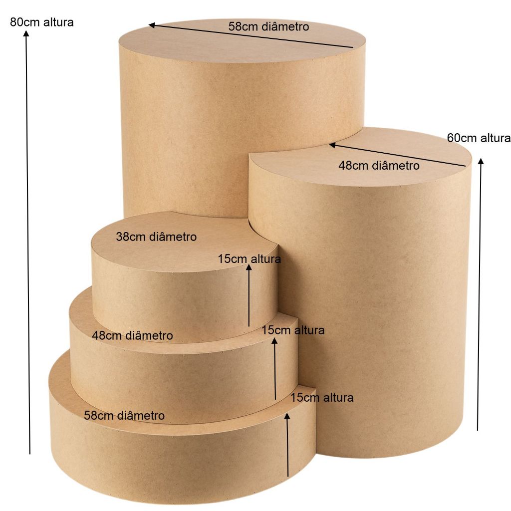 Compra Limitada: Para garantir que o produto chegue em perfeitas condições, por favor, adquira apenas 1 unidade por venda. A compra de duas ou mais unidades pode exceder o peso permitido para o envio. Kit de 5 Cilindros Desconstruídos em MDF Grande: 80 cm de altura x 58 cm de largura Médio: 60 cm de altura x 48 cm de largura Intermédio: 15cm de altura x 58 cm de largura Pequeno: 15 cm de altura x 38 cm de largura Mini: 15 cm de altura x 48 cm de largura Transforme sua decoração com o quinteto de Cilindros Desconstruídos! Feitos em MDF de 2,5 mm de alta resistência, esses cilindros são perfeitos para dar um toque único à sua festa. O design inovador permite que eles se encaixem um dentro do outro, facilitando o transporte e o armazenamento. O que você recebe: Cilindros de alta qualidade, com acabamento impecável em MDF. Embalagem segura com plástico bolha e caixa reforçada, garantindo que seu produto chegue intacto. Atenção: As tonalidades do MDF podem variar de acordo com os lotes recebidos. Atenção: Como o peso total do produto excede o limite permitido, comprar apenas 1 jogo por vez. Se desejar mais de 1, basta realizar outra compra. Compre agora e dê um toque sofisticado à sua decoração!