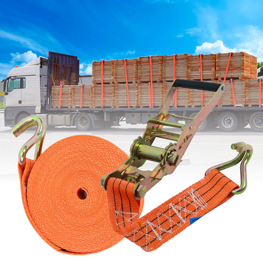 Conjunto Cinta Catraca 3T 9M Gancho J Aço Reforçado Resistente para Transporte de Cargas Pesadas