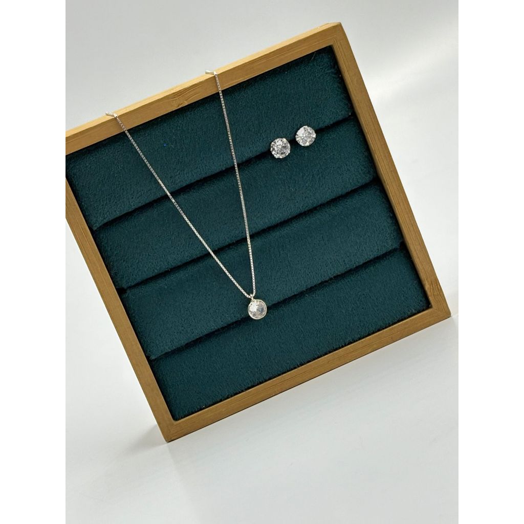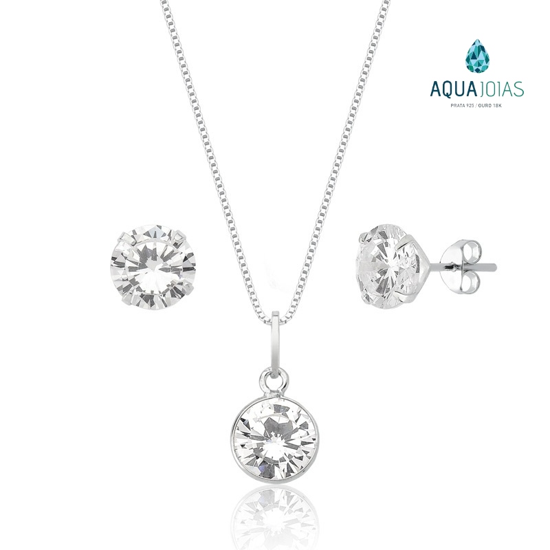 Conjunto Colar e Brinco prata 925 redondo cristal 45cm