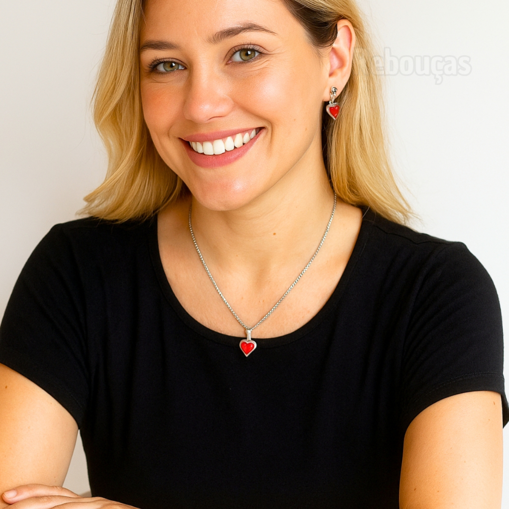 Kit Cristais Coração - Colar E Brinco Zircônias Aço Inox não escurece e não da alergia Conjunto Coração Colar Brinco Nosso colar de zircônia em formato de coração, esta disponível em diversas cores de cristal brilhantes. Acompanha colar e brinco. Com acabamento prateado, esse colar é a escolha perfeita para aqueles que buscam uma joia sofisticada e ao mesmo tempo acessível. Além de ser uma ótima opção para presentear alguém especial, ele também é perfeito para complementar o seu look. A zircônia é uma pedra sintética popular em joias devido ao seu brilho intenso, semelhança ao diamante e versatilidade em cores e formatos. É acessível, sustentável e durável, tornando-a uma opção ideal para joias usadas diariamente. Combinando beleza, qualidade e preço, a zircônia é uma boa escolha para joias. TAMANHO: 45 CM Caso tenha dúvidas, estamos à disposição.