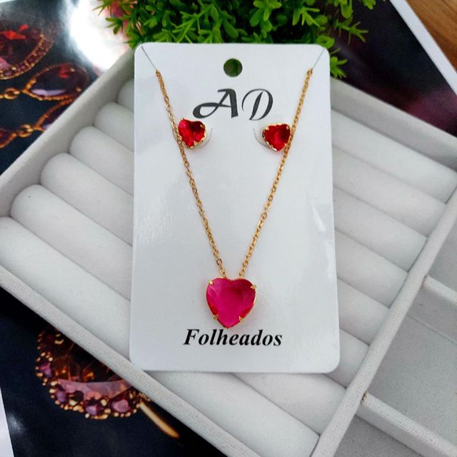 | Conjunto Colar e Brincos Cristal CORAÇÃO Ponto de luz Folheado a Pr... este produto | R$ 19,99 | — | 4.8/5 | 44 |