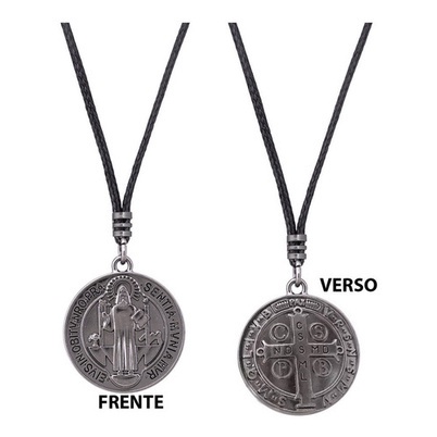 Conjunto Colar Masculino e Pulseira Couro Ecológico São Bento Pulseira masculina feita em couro sintético (ecológico) na cor preta com fecho cromado de trava e medalha confeccionada em aço cor cinza brilhosa Imagem São Bento. Pulseira de qualidade, linda e moderna que pode compor looks de diferentes estilos e ocasiões. Colar com regulador de tamanho feito em fio de algodão encerado de alta resistência, muito mais macio e confortável ao usa-lo. Pingente confeccionado em liga de metal esmaltada medalha imagem de São Bento. Além do estilo, beleza, possuem alta durabilidade. Obs: A pulseira pode ser ajustada do 19 cm até o 24 cm de comprimento, mais precisa de apenas um alicate de unha para ajustar a trava que regula o tamanho. Medidas da Pulseira - Largura da pulseira: 15 mm - Diâmetro da medalha: 3 cm - Comprimento da pulseira aberta: 19 cm a 24 cm (precisa ajustar o tamanho caso chegue diferente da medida do seu pulso) Medidas do Colar - Comprimento do cordão: de 26 cm curto até 72 cm esticado (onde pode regular da forma que achar melhor) - Altura da placa: 2,60 cm - Largura da placa: 1,84 cm - Nota Fiscal Enviamos nota fiscal
