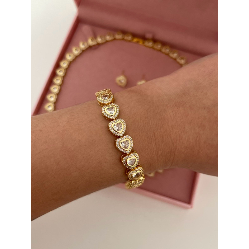 Material: BIJUTERIA FINA ✨ 📏 MEDIDAS: Colar 40cm Pulseira 18cm ⚠️CUIDADOS: Evite contato com água, suor, perfumes, cremes e produtos químicos. Retire antes de dormir, tomar banho ou praticar atividades físicas. Guarde em local seco, longe do sol, e faça a limpeza apenas com flanela seca. Assim seus acessórios permanecem bonitos por muito mais tempo 💖
