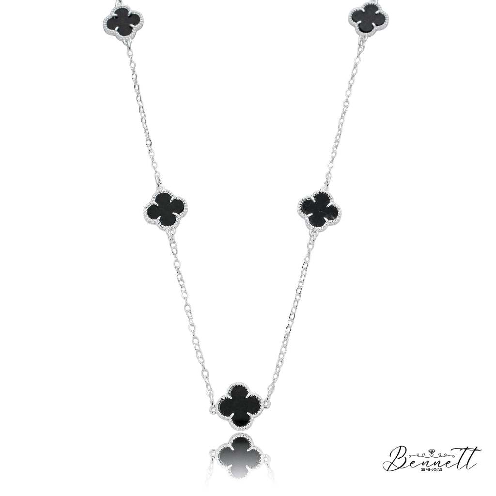 conjunto colar + pulseira trevo virginia preto prata 925 + BRINCO BRlNDE