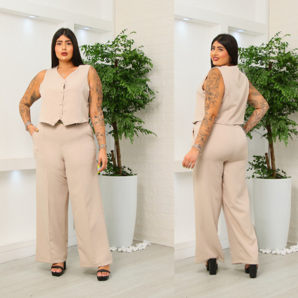 Conjunto Colete Calça Alfaiataria Pantalona Social Plus Size