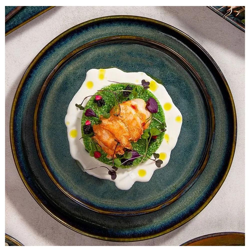 Descubra a profundidade única da linha Oceano, onde o azul esverdeado se torna uma expressão de elegância. Cada peça é um mergulho no desconhecido, uma paleta rica que transcende as águas. Deixe-se envolver pela misteriosa beleza deste tom, transformando sua mesa em um cenário de sofisticação incomparável. Oceano, onde a profundidade encontra a singularidade. Produtos Únicos: Neste produto, utilizamos esmaltes especiais que passam por reações químicas durante a queima, resultando em alterações únicas entre as peças da mesma coleção. Você encontrará na mesma embalagem uma ampla variedade de tonalidades, texturas e efeitos, tornando cada produto único e com um aspecto natural exclusivo. Portanto, cada item é verdadeiramente especial e proporciona uma experiência única para você. Lava-louças: O Stoneware Porto Brasil pode ser usado na máquina de lavar louças. Retire o excesso de alimentos das peças e se possível, enxágue-as antes de colocar na máquina de lavar louças. Consulte o manual do proprietário de seu lava-louças para obter instruções especiais de carregamento de sua máquina e tipo de lavagem. Cuidado ao carregar sua máquina em excesso, porque isso pode provocar riscos nas peças. Características Tipo de Produto: Prato Estilo: Esmalte Reagente Quantidade de Peças: 06 Formato: Redondo Pode ser levado ao micro-ondas Pode ser lavado na máquina de lava-louças Recomendações de uso Forno, Freezer e Micro-ondas: O Stoneware Porto Brasil possui uma alta resistência mecânica e térmica. A variação térmica aconselhada é por volta dos 240°C. O Stoneware Porto Brasil, pode ser usado com segurança no forno, micro-ondas e freezer, desde que respeitadas as especificações de manuseio. Como precaução e garantia do uso, deve-se evitar retirar o produto do forno/micro-ondas e colocar o mesmo diretamente em uma superfície fria. O inverso também é válido, retirar o produto do freezer e colocar diretamente no forno e micro-ondas. Transferência de calor: As alças de produtos podem sofrer aquecimento durante o uso no micro-ondas. Deve-se ter cautela no manuseio. Os processos de aquecimento e resfriamento deverão ser feitos de forma gradual. Nunca utilizar o produto em contato direto com a chama de fogo ou qualquer outra fonte de calor direta. Especificações Técnicas Modelo: 1431119001 Cor: Azul Material: Stoneware EAN: 7908416635331 Garantia: 90 dias por defeito de fabricação e 09 meses para gretamento Dimensões e Peso Dimensões do Produto sem Embalagem: 20x215 mm Dimensões do Produto com Embalagem (AxLxP): 243x145x237 mm Peso do Produto sem Embalagem: 0,55 Kg Peso do Produto com Embalagem: 3,58 Kg Itens Inclusos 01 Conjunto de Pratos Fundo com 06 Peças