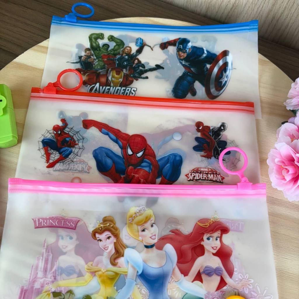 Conjunto com 10 estojos zip lok princesas, pokemon, homem aranha e hérois festa infantil escolar