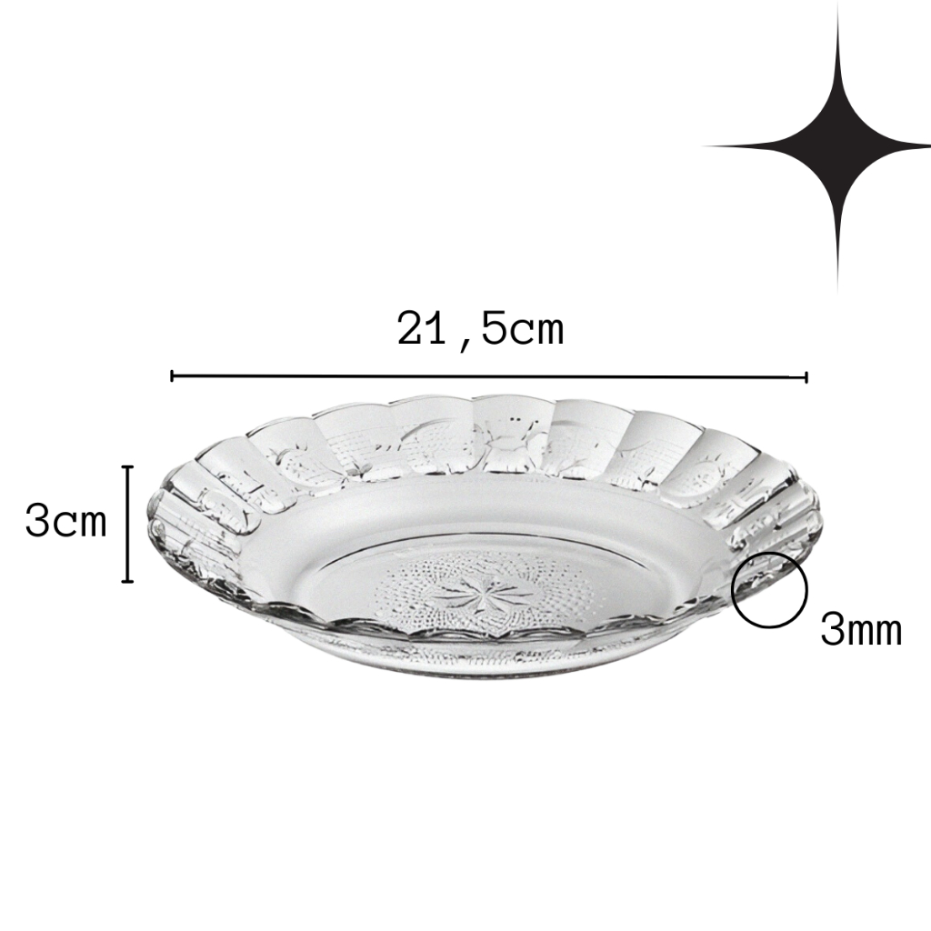 Conjunto com 12 Pratos Fundos Egípcios de Vidro 21,5cm – Design em Alto Relevo, Sofisticado