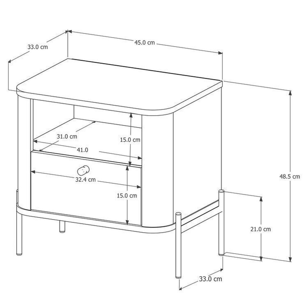 Conjunto com 2 Mesas de Cabeceira Curva 1 Gaveta e 1 Nicho Pés e Puxadores em Metal 45cm Tucupí