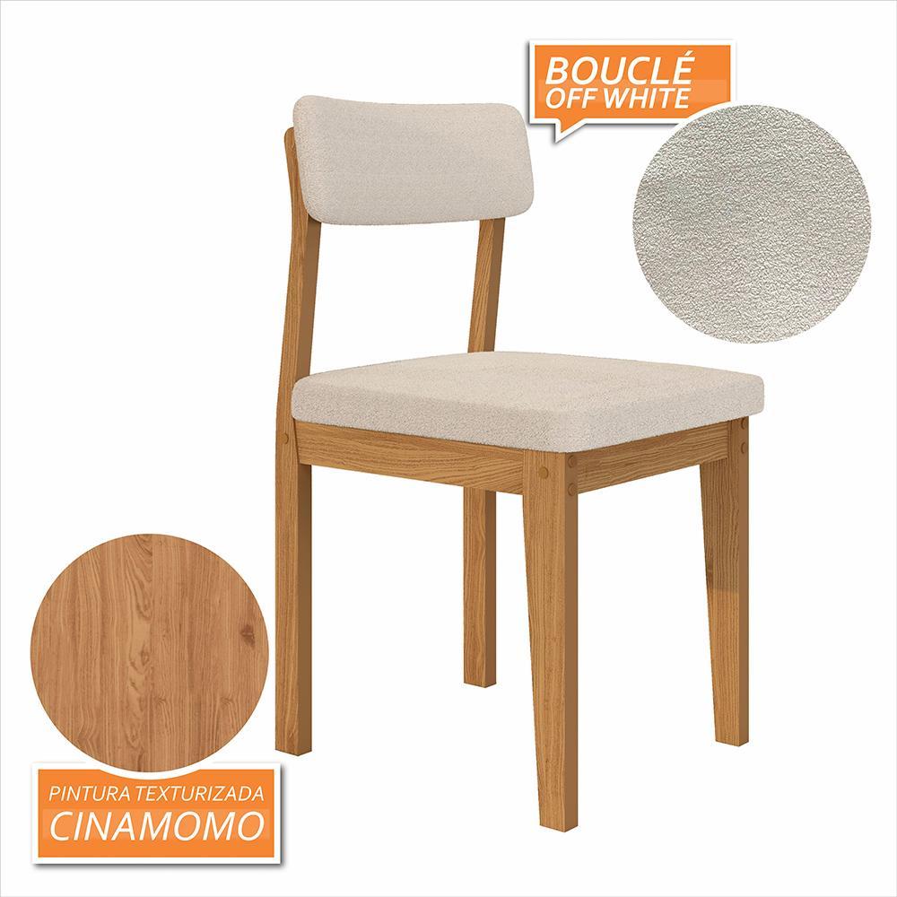Conjunto Com 4 Cadeiras Estofadas Utah Cinamomo/bouclé Off - M.a