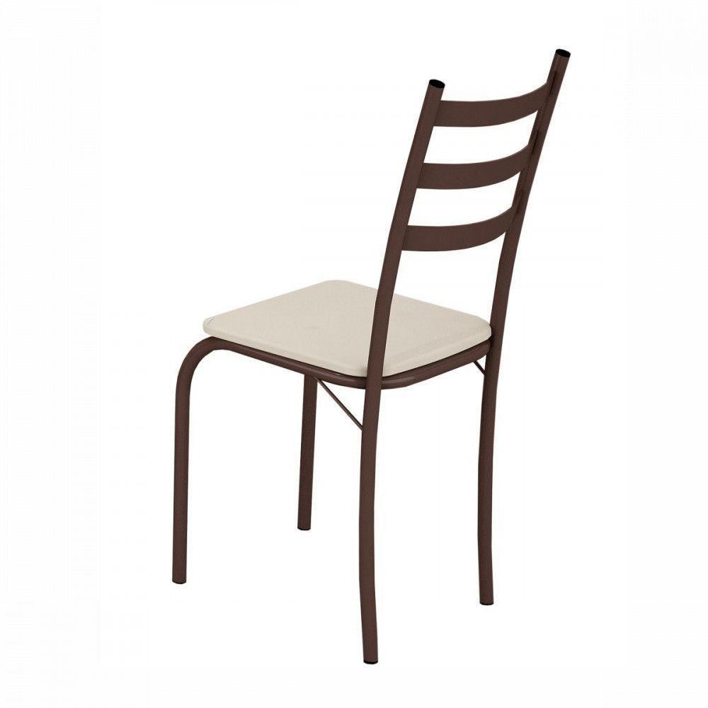 Conjunto Com 4 Cadeiras Maraba Marrom Assento Creme Teixeira Marrom Com Creme Nada como ter os moveis certos para cada ambiente, nao e mesmo? Sua sala de jantar ou cozinha, vai ficar ainda mais linda com este Conjunto com de 4 cadeiras! Ideal para acomodar aos amigos de forma confortavel garantindo reunioes agradaveis ao redor da mesa, elas possuem um design classico e oferecem diversas possibilidades na hora de decorar o espaco. Dimensoes: Altura: 85 cm | Largura: 37 cm | Profundidade: 45 cm Caracteristicas: - Estrutura: Tubo de aco carbono 7/8 polegadas - Tipo do tecido: Corino - Assento: MDP 12 mm, espuma D8 - Acabamento de pintura: Fosco - Possui sapatas - Suporte de peso: 100 kg - Garantia: 3 meses **Imagens ilustrativas. Objetos nao acompanham o produto. AVISO: Esclarecemos que a Opcao Moveis se responsabilizara pela entrega dos produtos adquiridos ate a porta de entrada ou portaria do endereco indicado, ou seja: e de total responsabilidade do cliente a montagem, desmontagem e instalacao do produto adquirido. Para evitar futuros desagrados ou imprevistos com a entrega, tambem e necessario que o cliente confira as dimensoes do produto escolhido, antes de finalizar a compra, devendo certificar-se de que a mercadoria passara normalmente por elevador, porta, escada e corredor.