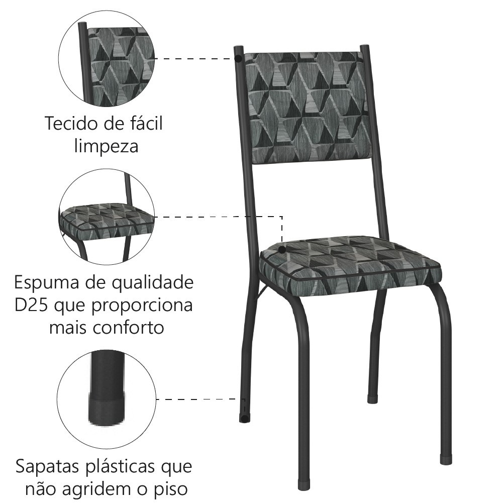 Conjunto Com 4 Cadeiras Tubular Diana Preto Fosco Assento Mosaico Artefamol