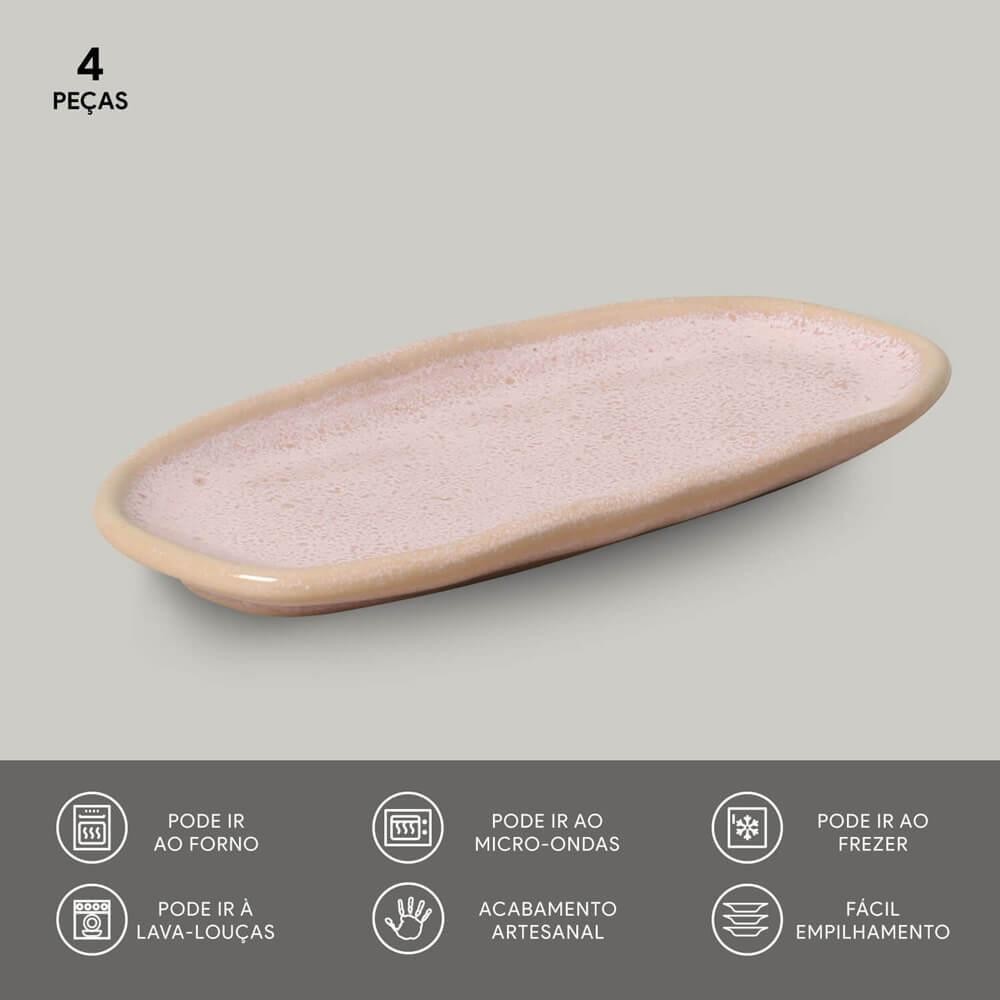 Conjunto com 4 Travessas Oval Rasa Mini Orgânico Litchi 16,5x8cm