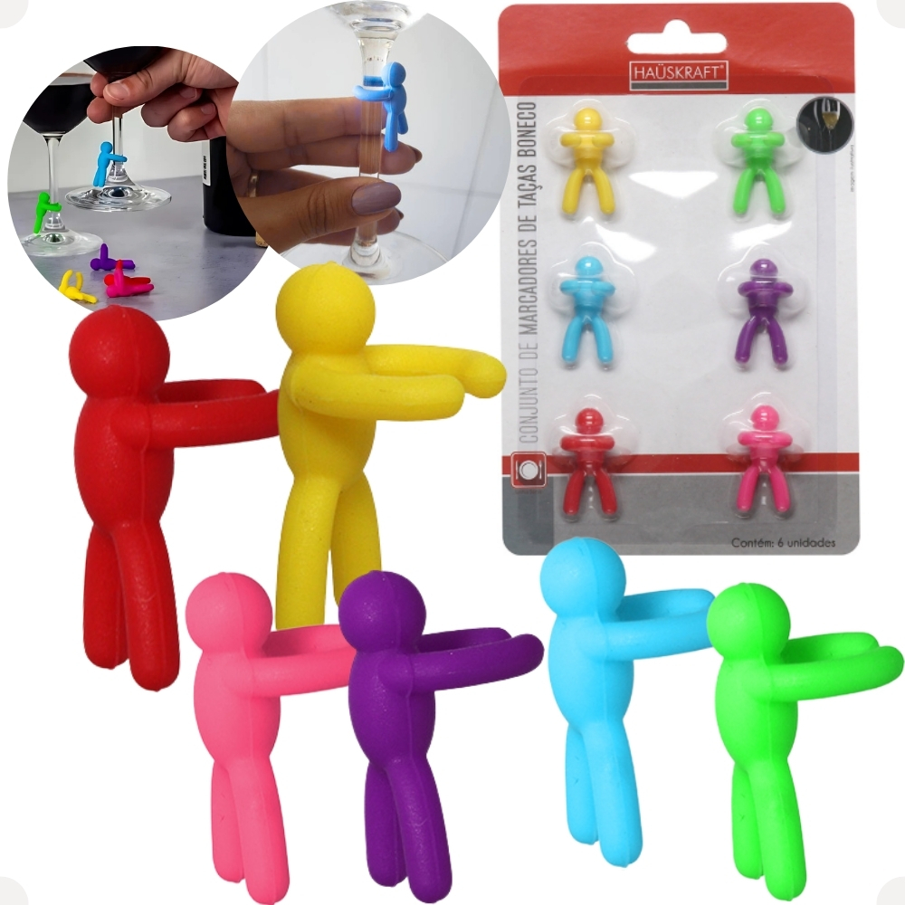Conjunto Com 6 Marcadores Para Taças E Copos Bonecos De Silicone Coloridos 2 x 3cm eventos Hauskraft
