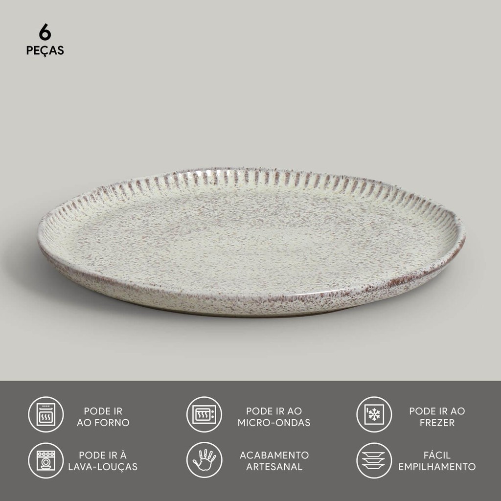 Conjunto com 6 Pratos de Sobremesa Linhas Pistache Ø21,5cm