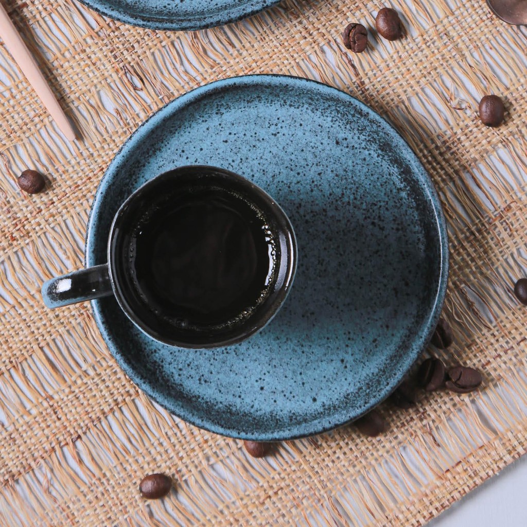 Conjunto com 6 Xícaras De Café Orgânico 70ml com 6 Pires Descentralizado Night Sky