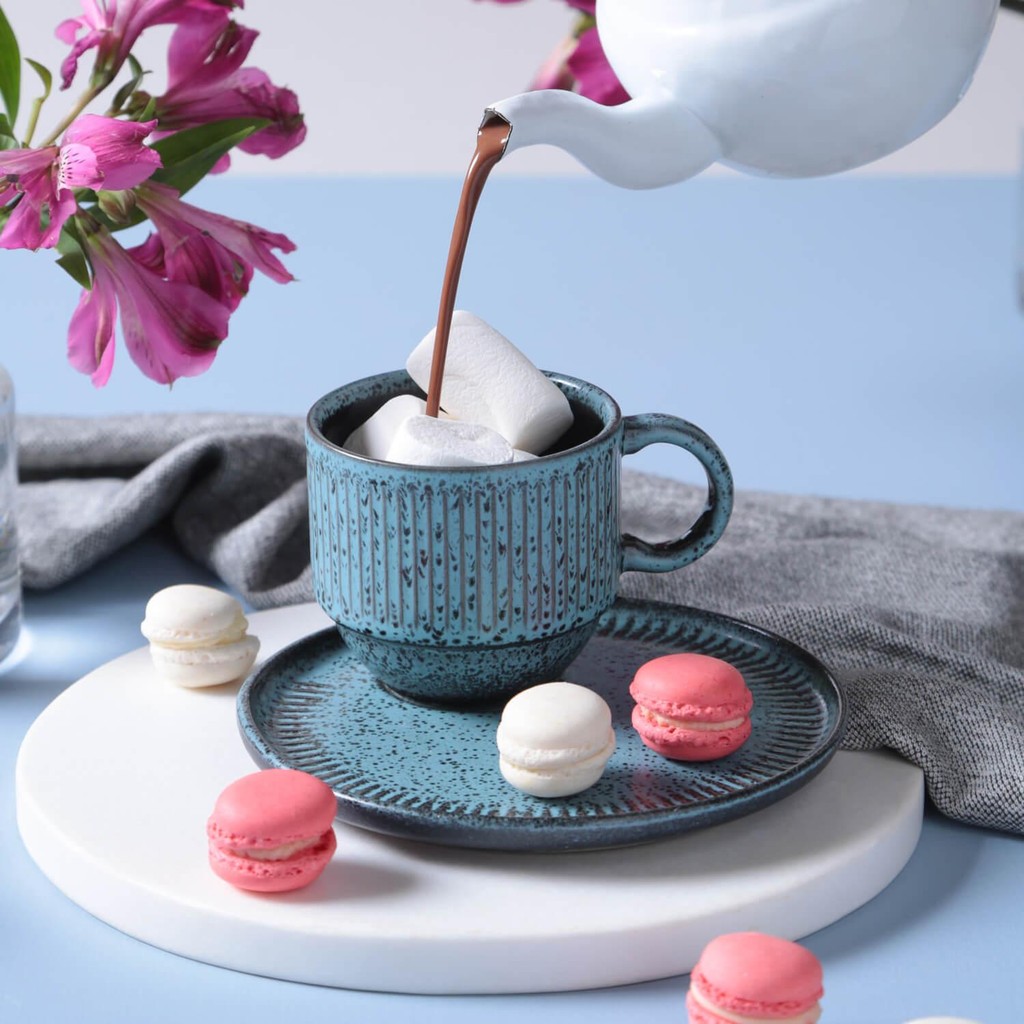Conjunto com 6 Xícaras de Chá Empilhável com 6 Pires Linhas Night Sky 230ml