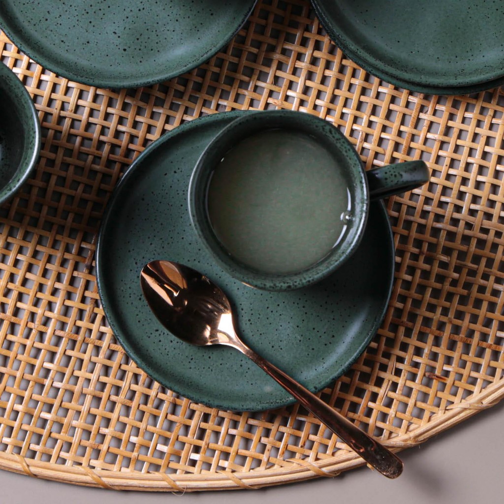 Conjunto com 6 Xícaras De Chá Orgânico 170ml com 6 Pires Descentralizado Greenery