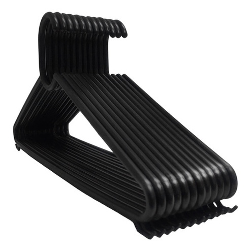 KIT COM 90 CABIDES REFORÇADOS ANTI-DESLIZANTES EM POLIPROPILENO COM FORMATO ARREDONDADO. Características: - Altura: 17 cm - Comprimento: 37 cm - Espessura: 07 mm (0,7 cm) - Cor: Preto Nossos cabides foram projetados após um longo período de pesquisas e análise com nossos clientes sendo um modelo mais resistente e com uma espessura maior diferenciando dos demais concorrentes e trazendo mais rigidez e robustez estrutural. Os cabides possuem formato arredondado e liso não deixando marcas na roupa e prolongando assim a vida útil das roupas. Modelo exclusivo próprio para atender desde o atacadista, lavanderias, Lojas de Roupas e até o usuário mais exigente. Seu tamanho é compatível com todos os guarda-roupas, possuindo um ótimo acabamento, trazendo a funcionalidade e a simplicidade ao tirar e colocar roupas, além de contar com alças para pendurar peças delicadas. O modelo foi projetado para todas suas peças de roupas e acessórios, ele evita que as peças deslizem e se danifique. Com material resistente e com reforço estrutural na parte inferior do cabide seu design com curvas delicadas e mantendo uma aparência simples, funcional, moderna e contemporânea.