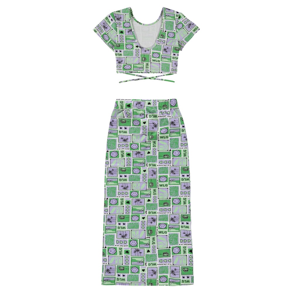 Conjunto com Blusa Cropped e Saia Gloss