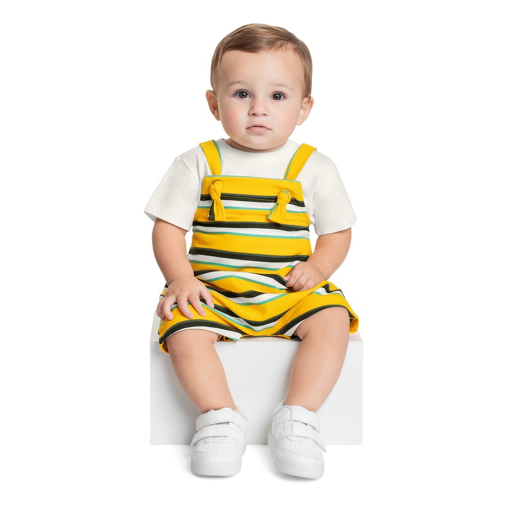 Conjunto para bebê menino, que combina estilo clássico e conforto. A blusa é confeccionada em meia malha e a jardineira em moletom sem felpa. A blusa possui uma estampa lisa, oferecendo um visual clean e elegante. A jardineira, com sua estampa listrada charmosa, adiciona um toque divertido e moderno ao look.Tecido: Meia Malha e MoletomComposição: CAMISETA: 100% algodão, JARDINEIRA: 50% algodão 50% poliésterModelagem: AmplaComprimento Mangas: CurtaComprimento: CurtoForro: NãoCintura: MédiaDecote: Redondo