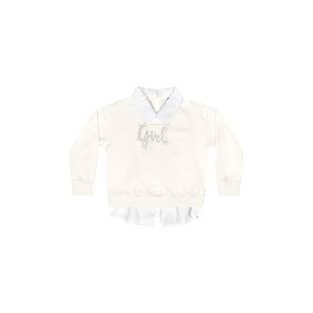 Conjunto infantil para menina. O blusão, confeccionado em moletom sem felpa, possui estampa com apliques de strass, adicionando um toque de brilho. O detalhe em tricoline imita uma camisa social por dentro do blusão, com gola social e barra aparentes, criando um look sofisticado. A legging, confeccionada em malha tweed com luréx, oferece conforto, com elástico na cintura para um ajuste perfeito.Tecido: Moletom sem felpa, tricoline e malha tweed com luréxComposição: BLUSAO: 50%algodão 50%poliéster,CALCA: 97%poliéster 3%elastanoModelagem: JustaComprimento Mangas: LongaComprimento: LongoForro: NãoCintura: MédiaDecote/Gola: Gola social