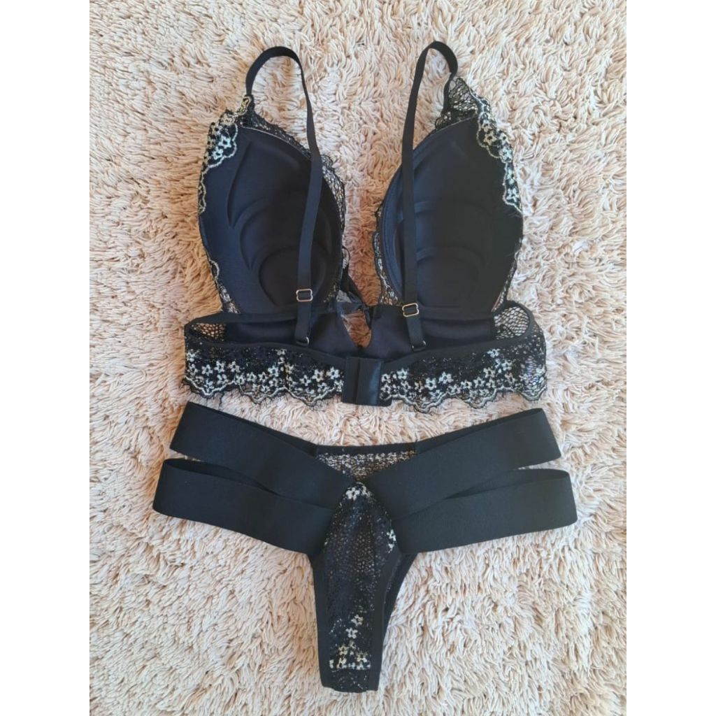 Conjunto com bojo decote profundo em renda bicolor Jacatrônica!O sutiã todo em renda bicolor Jacatrônica com alças de regulagens de metal e fecho couchet reforçado na parte de trás!Possui uma fita de Cetim no decote formando um lindo laço! Também possui internamente no meio da pala do sutiã malha de algodão. A calcinha também feita de renda bicolor Jacatrônica na frente e atrás, possui as laterais com elástico resistentes na cor preta e fundindo em malha de algodão.**A renda bicolor do conjunto sempre com fundo preto e detalhes nas cores!** Conjunto com bojo ** Bojos P e M possui bolha interna *Bojos G e GG não tem bolha P veste 38 a 40M veste 40 a 42G veste 42 a 44GG veste 44 a 46 Composição 83% poliamida 17% elastano Forro 100% algodão Bojo 100% poliéster
