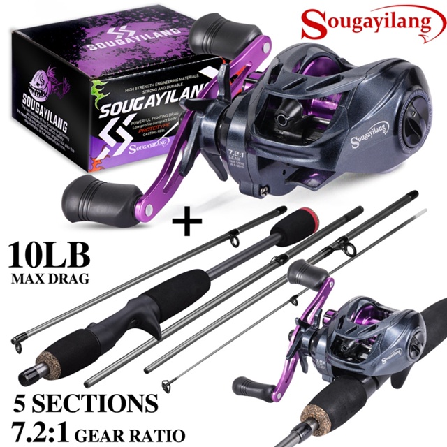 Conjunto Completo De Vara De Pesca Sougayilang E Carretel 1.70M/5.5FT Com Relação Engrenagem 7.2 : 1 Isca { 10KG }