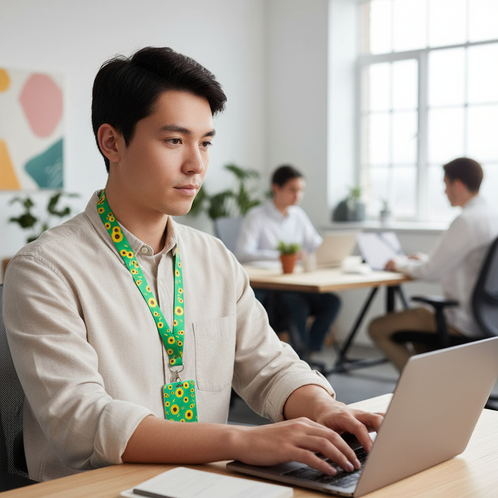 Conjunto Cordão Identificação C/ Porta Crachá Girassol Doença Oculta Autismo Surdez PCD TEA