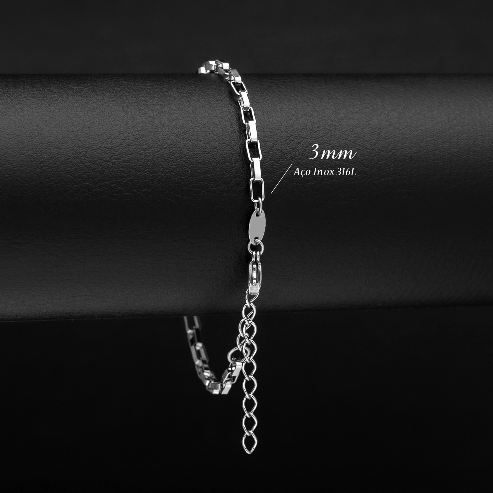 Material: Aco Inoxidavel Acompanha Embalagem: Sim Espessura Corrente: Espessura 3mm Medidas Pulseira: 21cm Com fecho: Sim