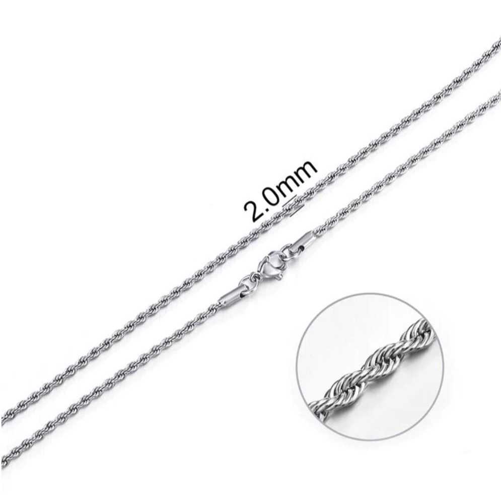 Conjunto Corrente Masculina Cordão Baiano 70cm 2mm Aço Inoxidável Kit Corrente Com Pulseira