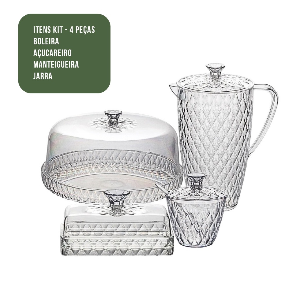 Conjunto Cozinha Glamour Boleira Jarra Queijeira Manteigueira Açucareiro Taça Café da Manhã Jantar