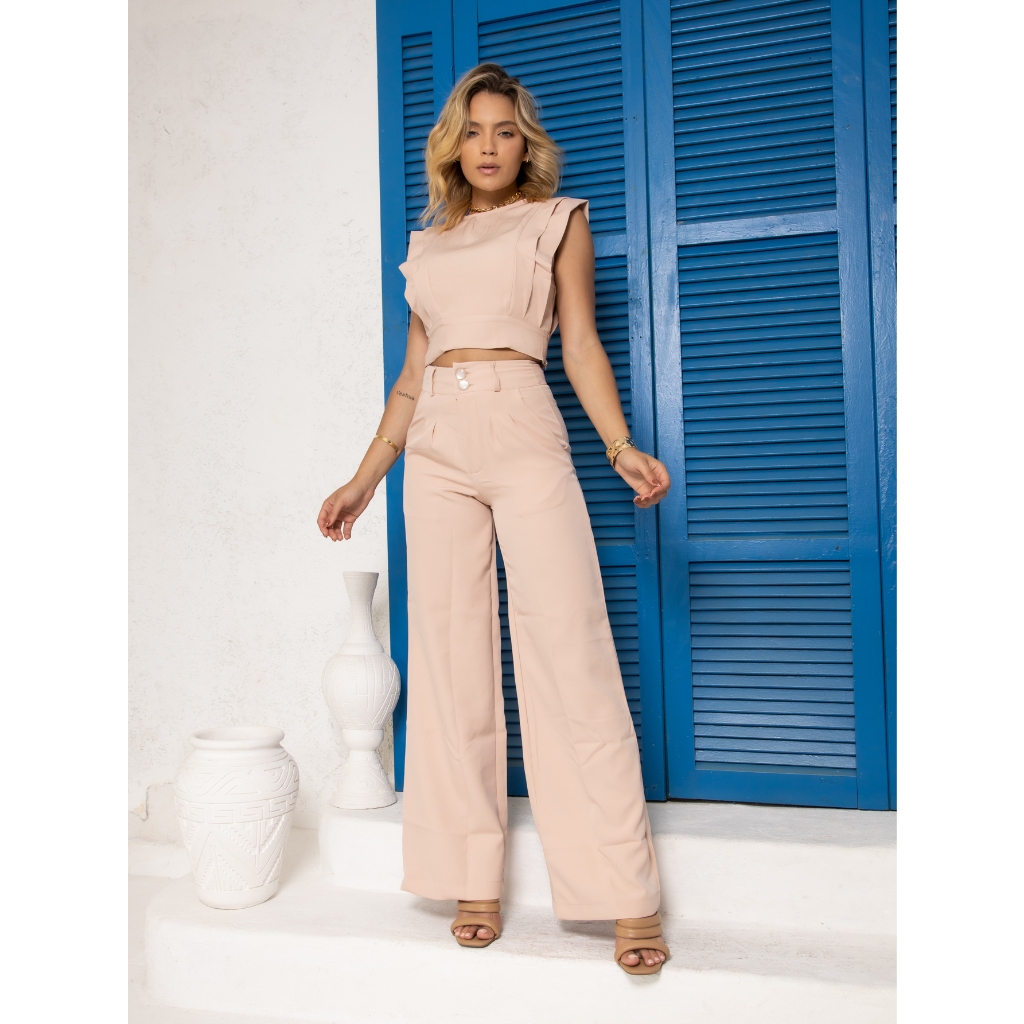 CONJUNTO CROPPED E CALÇA FLARE EM ALFAIATARIA. CON-036