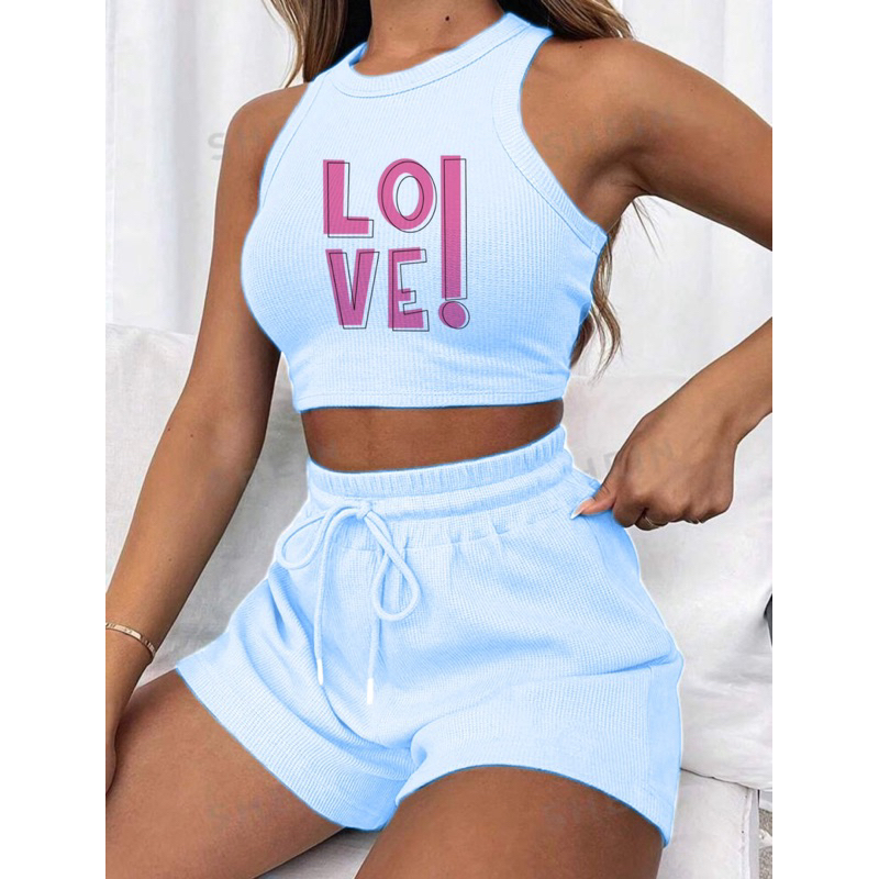 Conjunto cropped e short canelado 3D Feminino