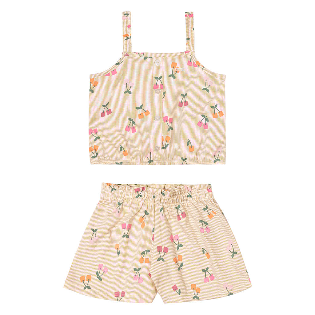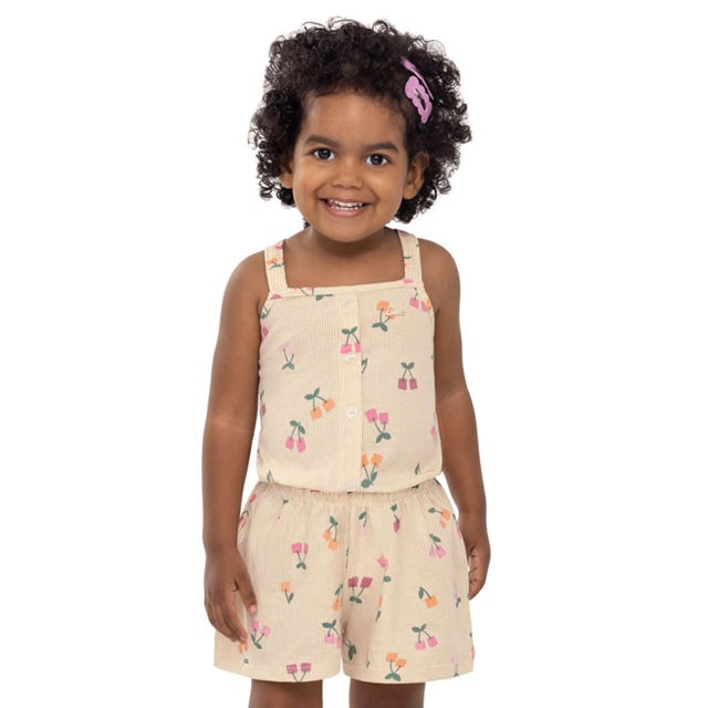 Conjunto Curto Infantil Menina Cerejinhas Elian Bege