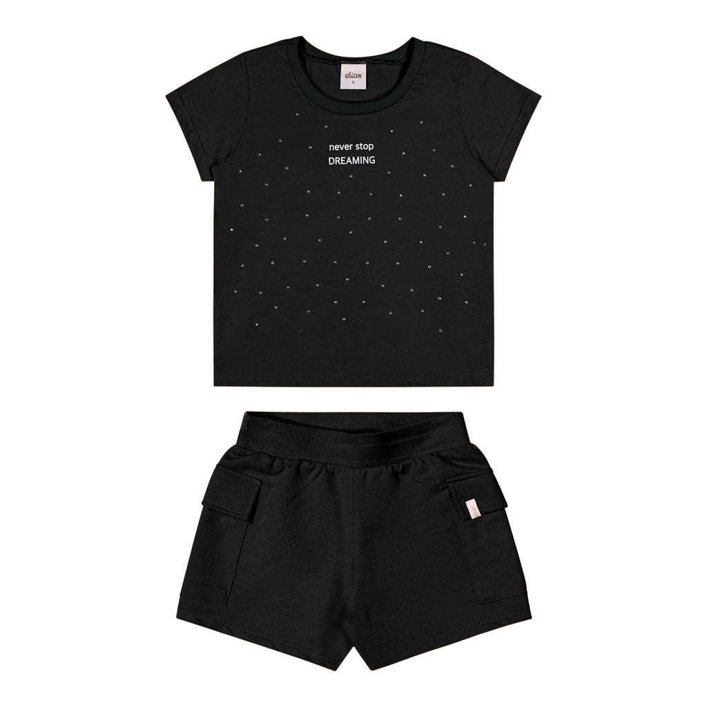 Conjunto Curto Infantil Menina Com Strass Elian Preto