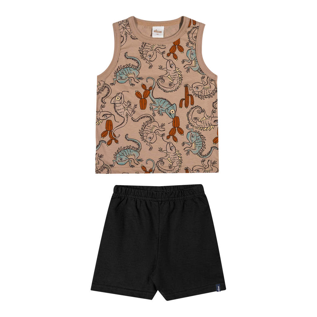 Conjunto Curto Infantil Menino Camaleões Elian Marrom