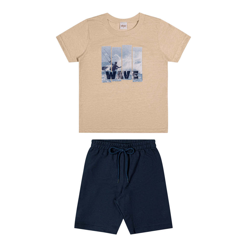 Conjunto Curto Infantil Menino Malha Listrada Elian Bege